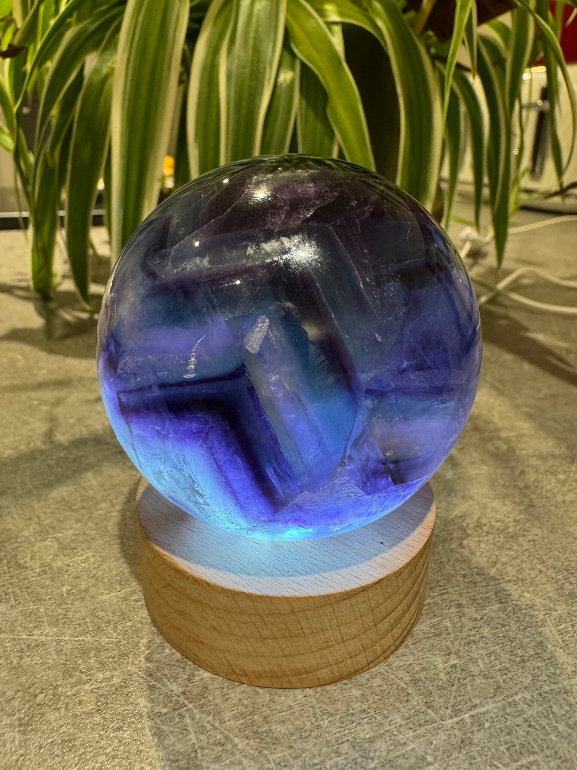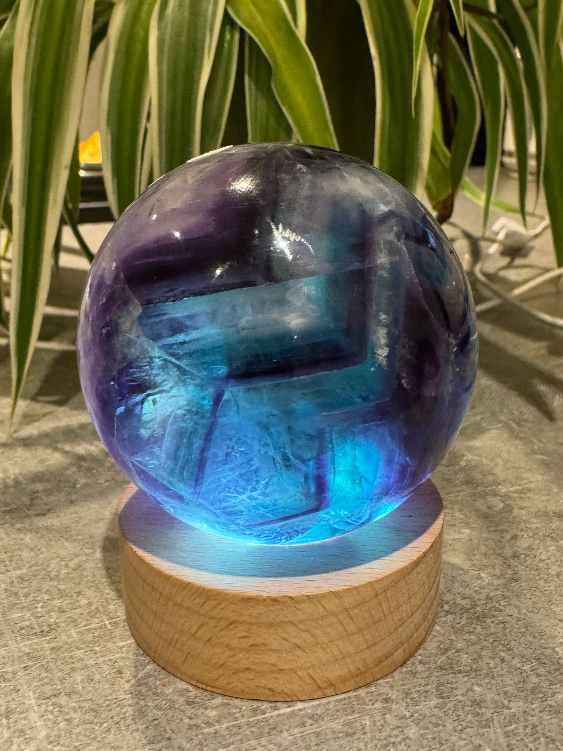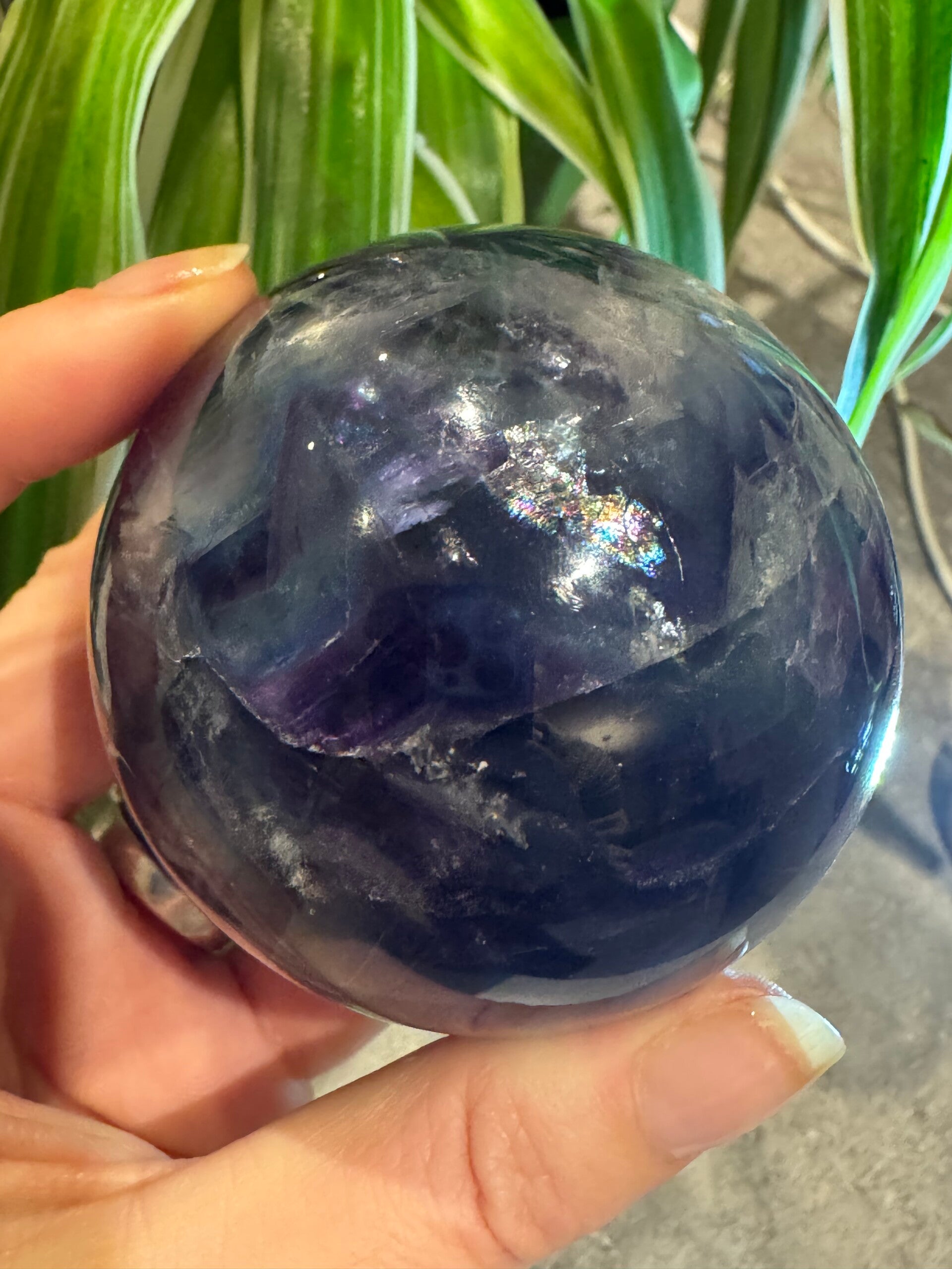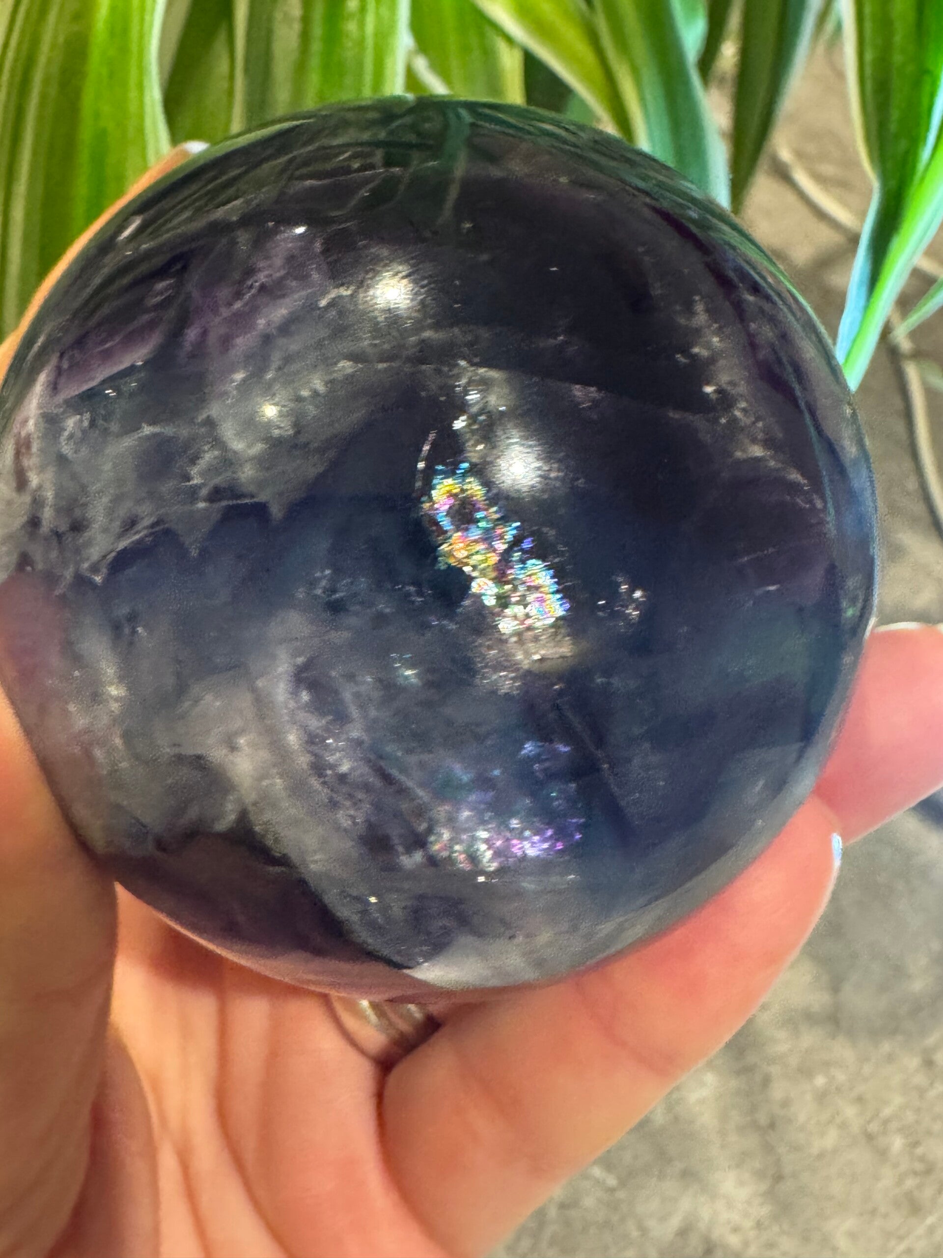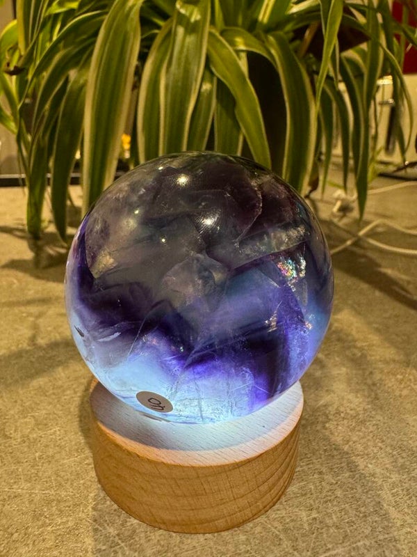 Stunning Flourite Sphere Blue, Green and Purple. with Rainbows and Natural Druzy