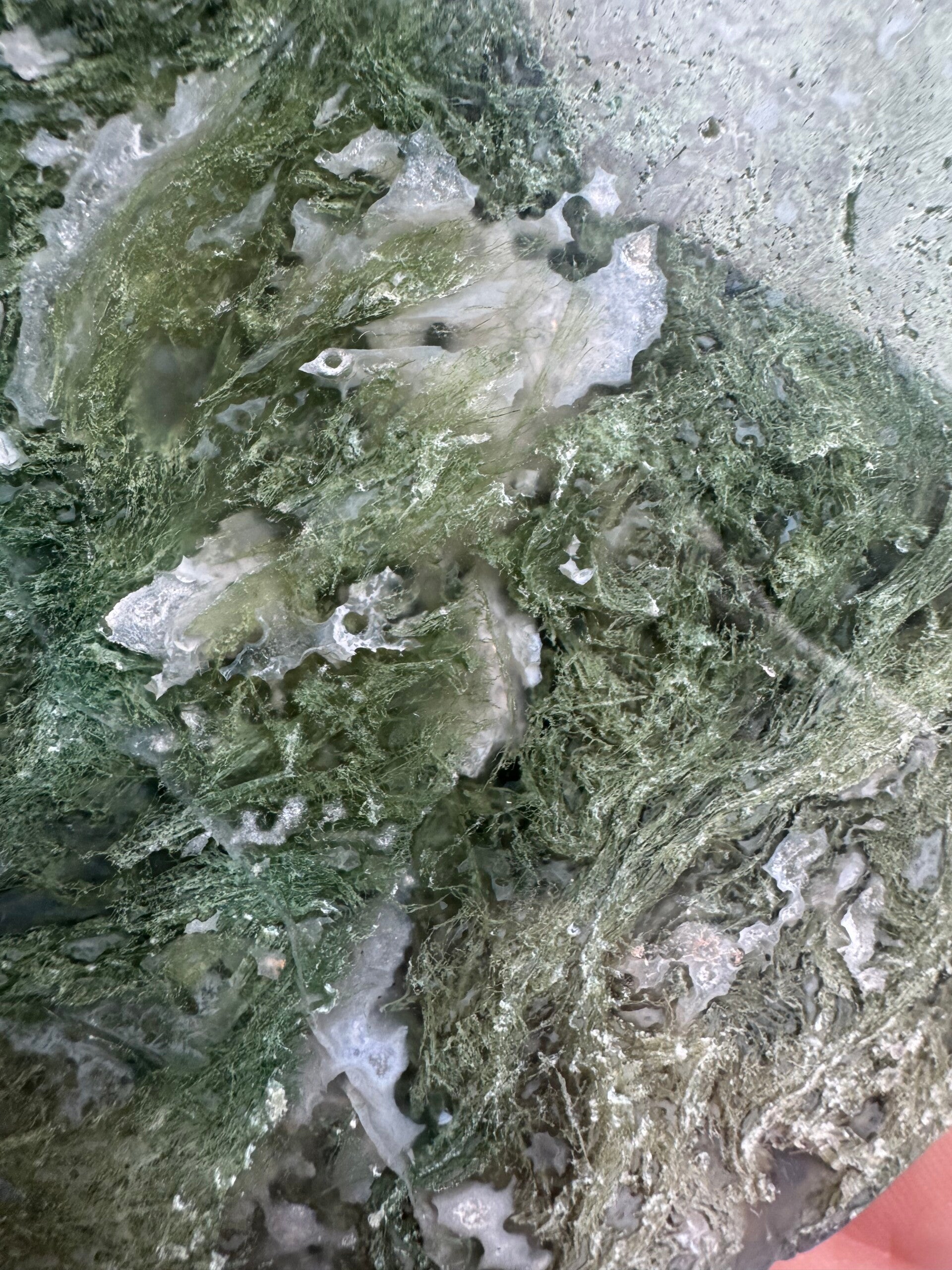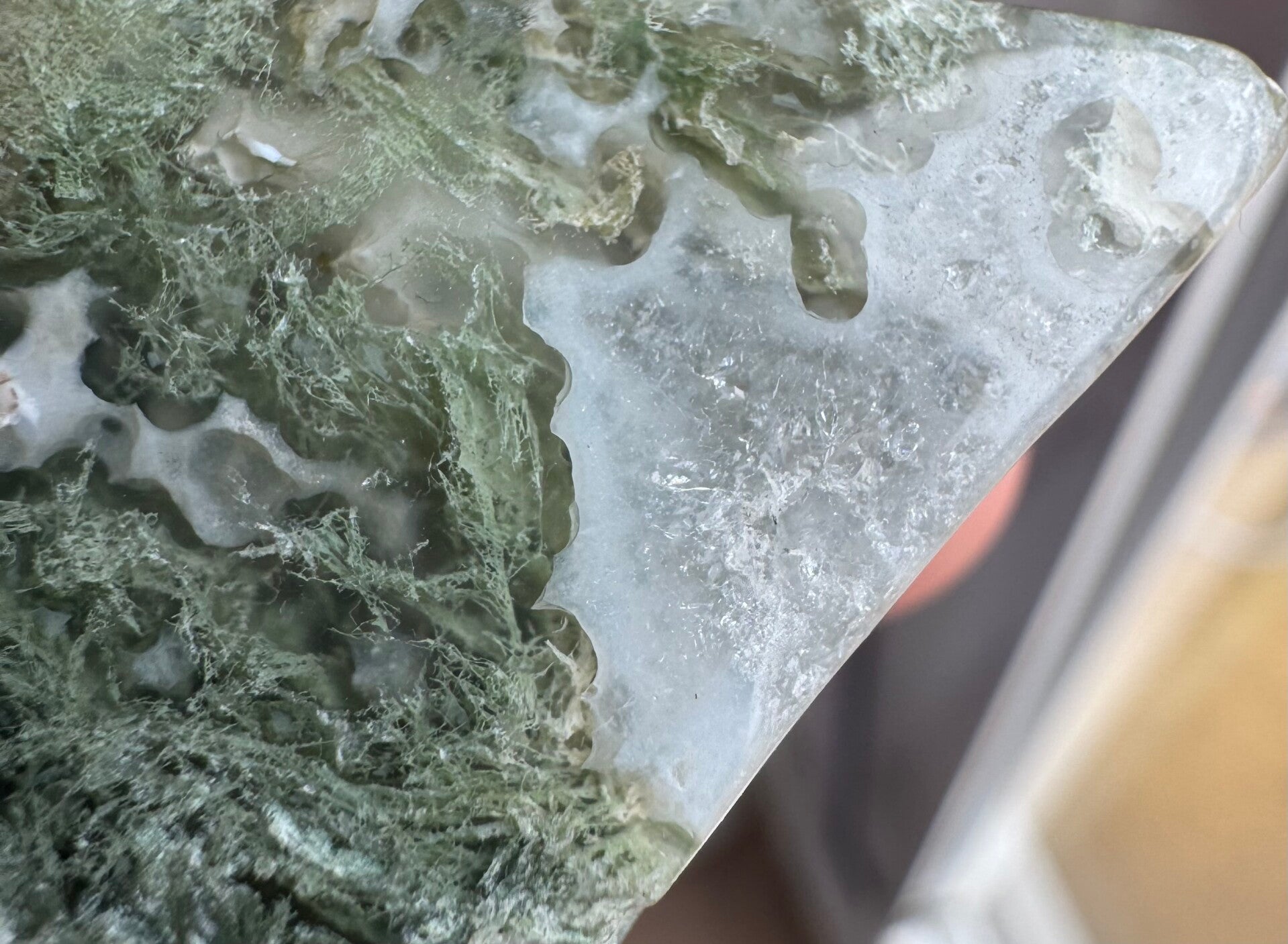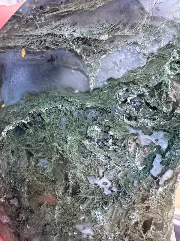 Chunky Moss Agate Moon includes transparent plastic Stand.