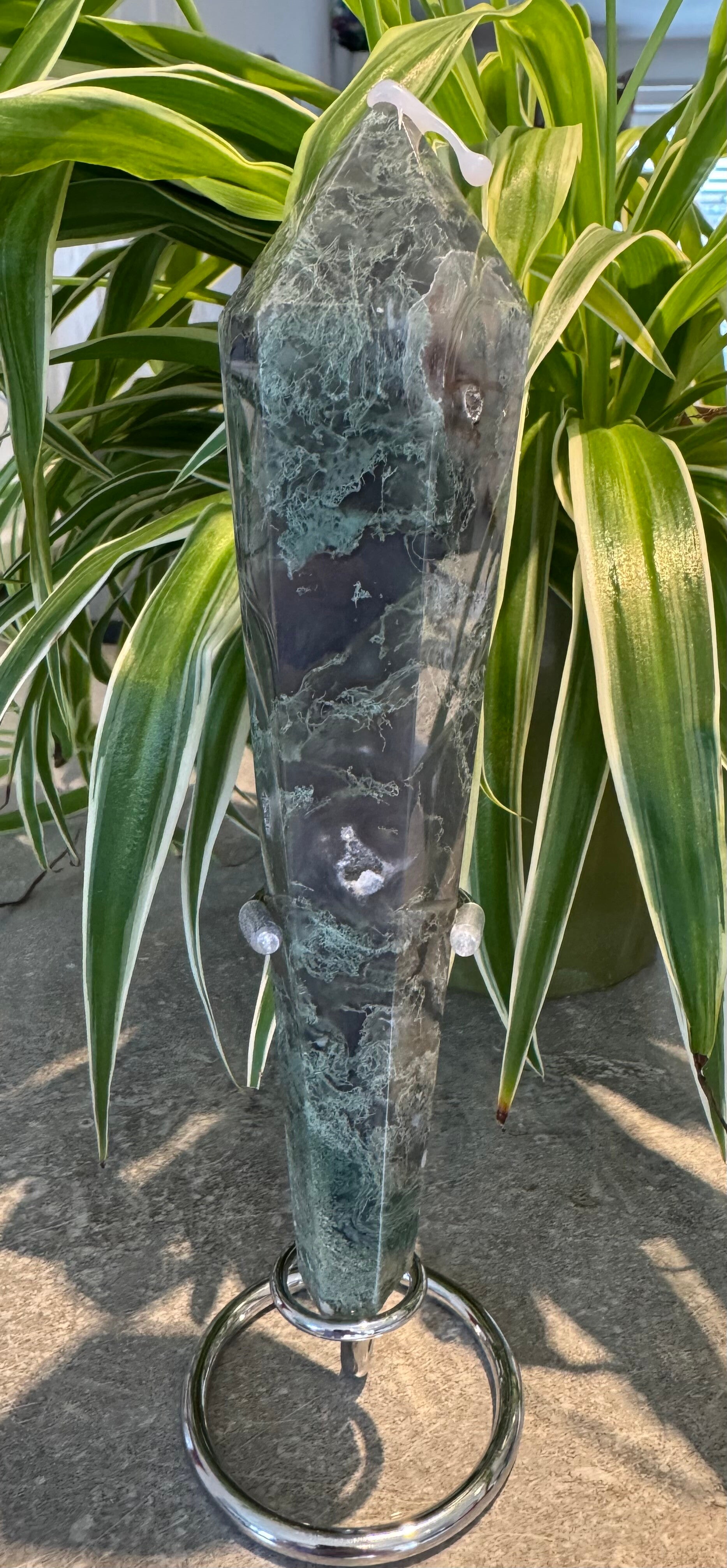 Moss Agate Wand with Druzy and Dendritic inclusions