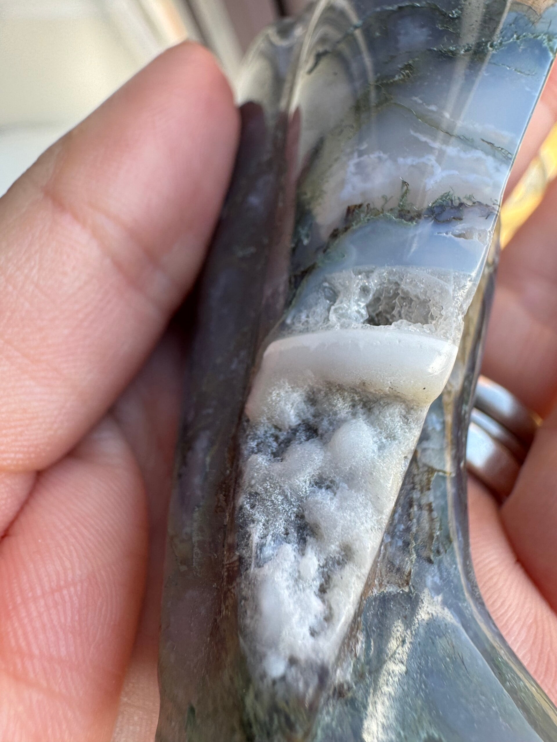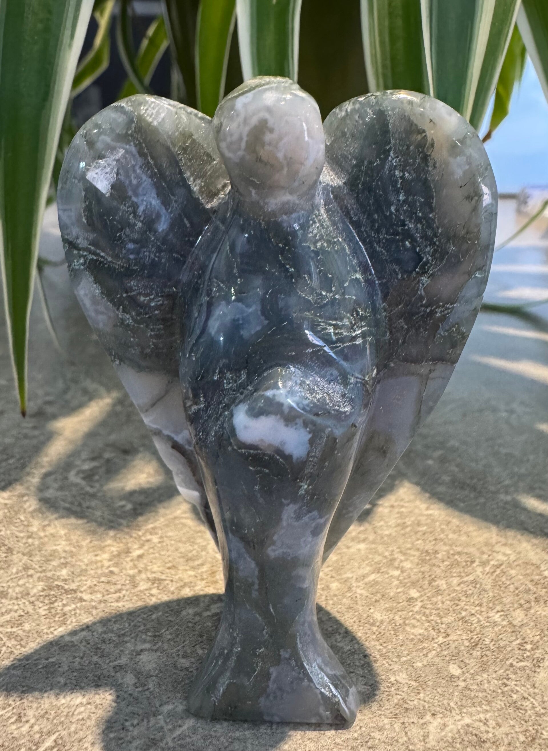 Beautiful Moss Agate Angel with Natural Druzy (see photo).