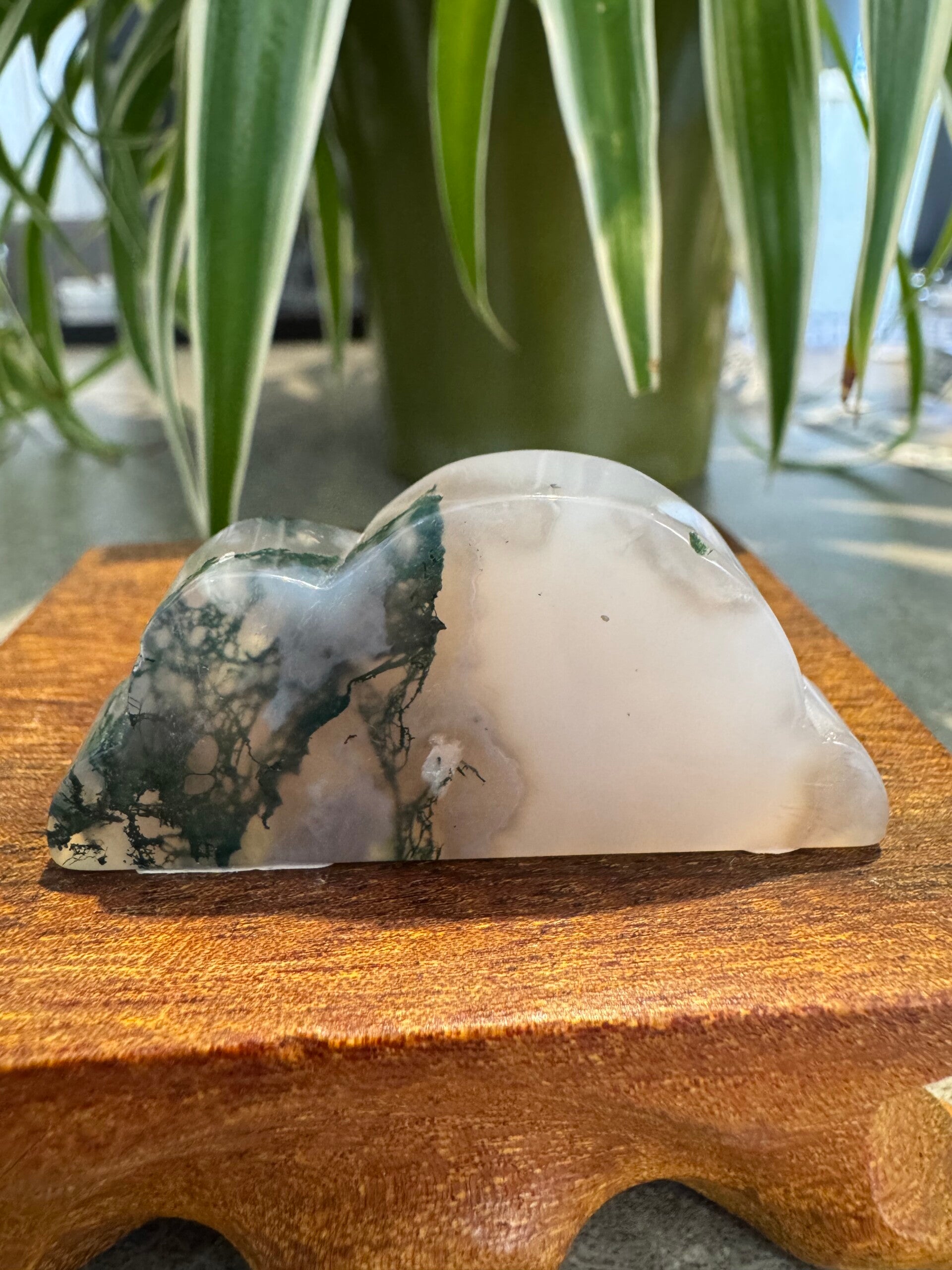 Moss agate is a powerful stabilizing, grounding, and abundance-attracting stone known for fostering emotional balance, mental clarity, and physical healing.
