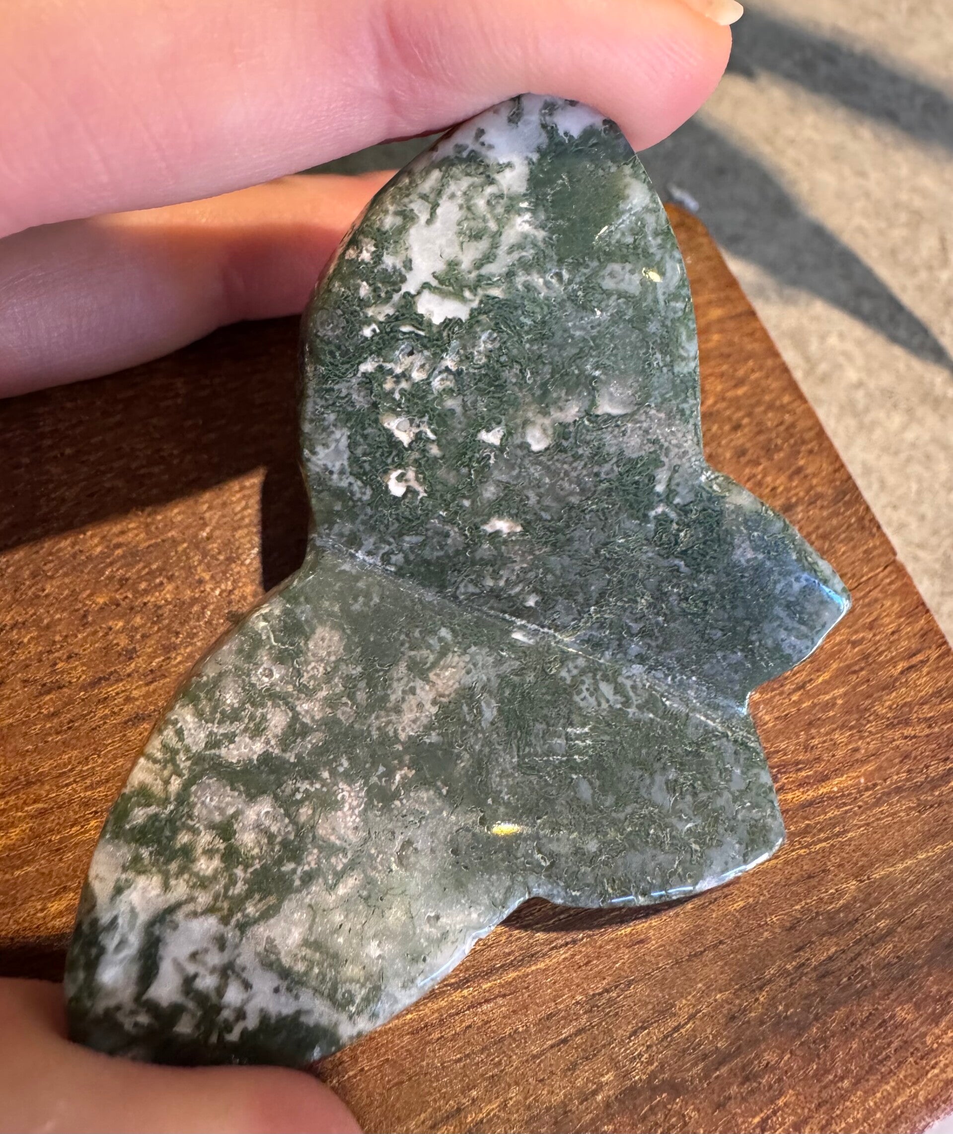 Moss Agate Butterfly with Plastic Stand