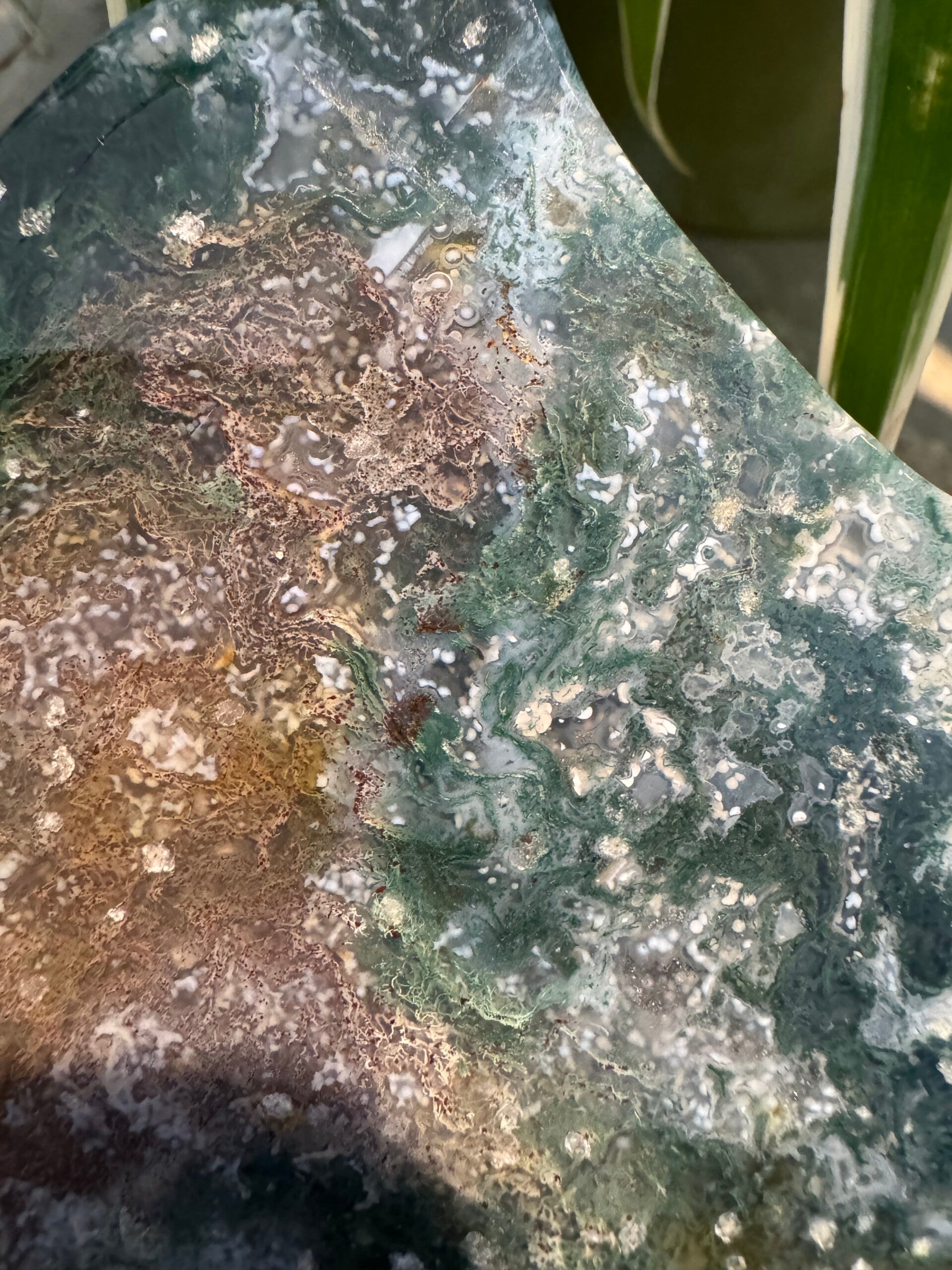 Moss agate is a powerful stabilizing, grounding, and abundance-attracting stone known for fostering emotional balance, mental clarity, and physical healing.