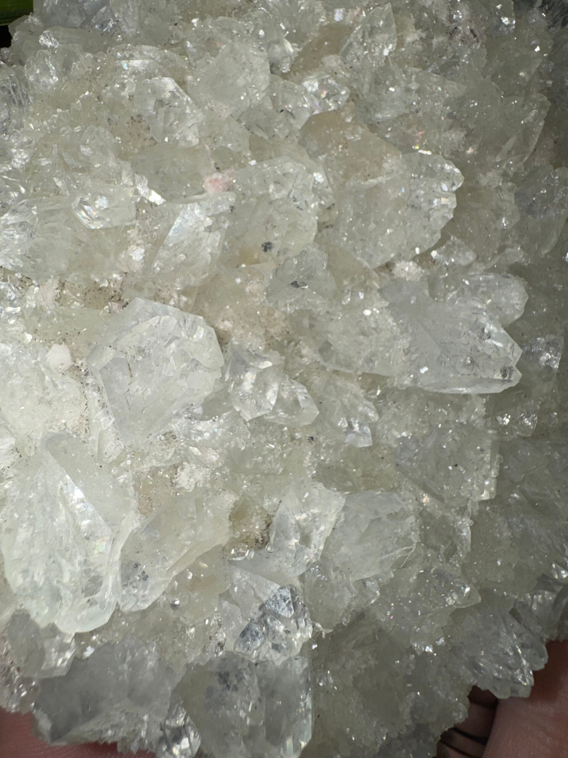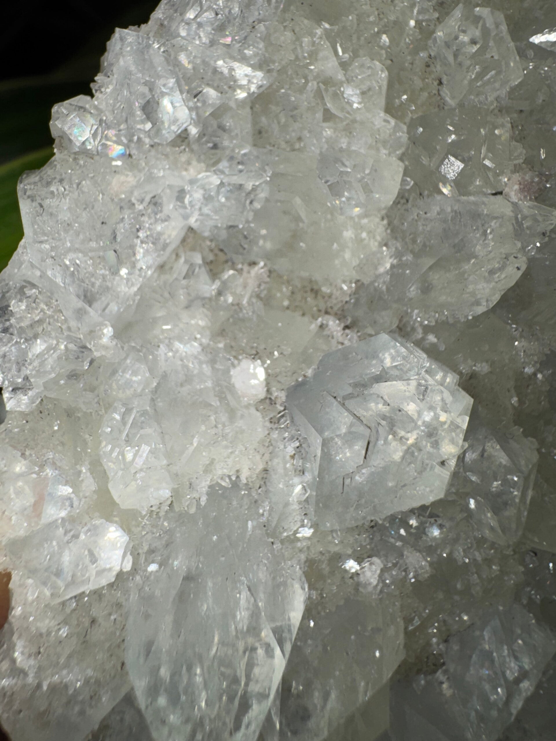 Green Apopholite is a high vibrational stone. It is known for easing anxiety, releasing negative energy, aiding in dream recall, and supporting physical health related to respiration and allergies.