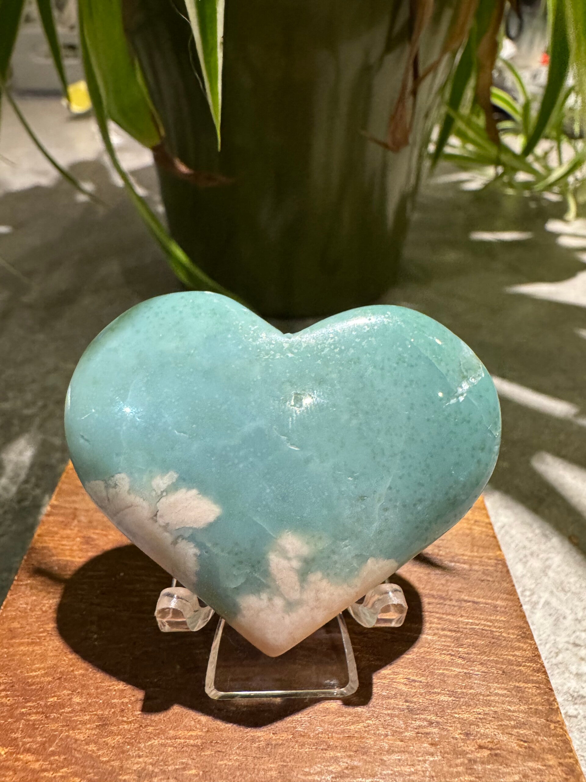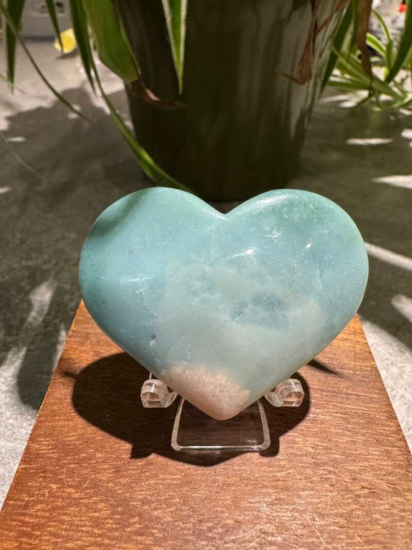 Rare Green Flower Agate Heart w438