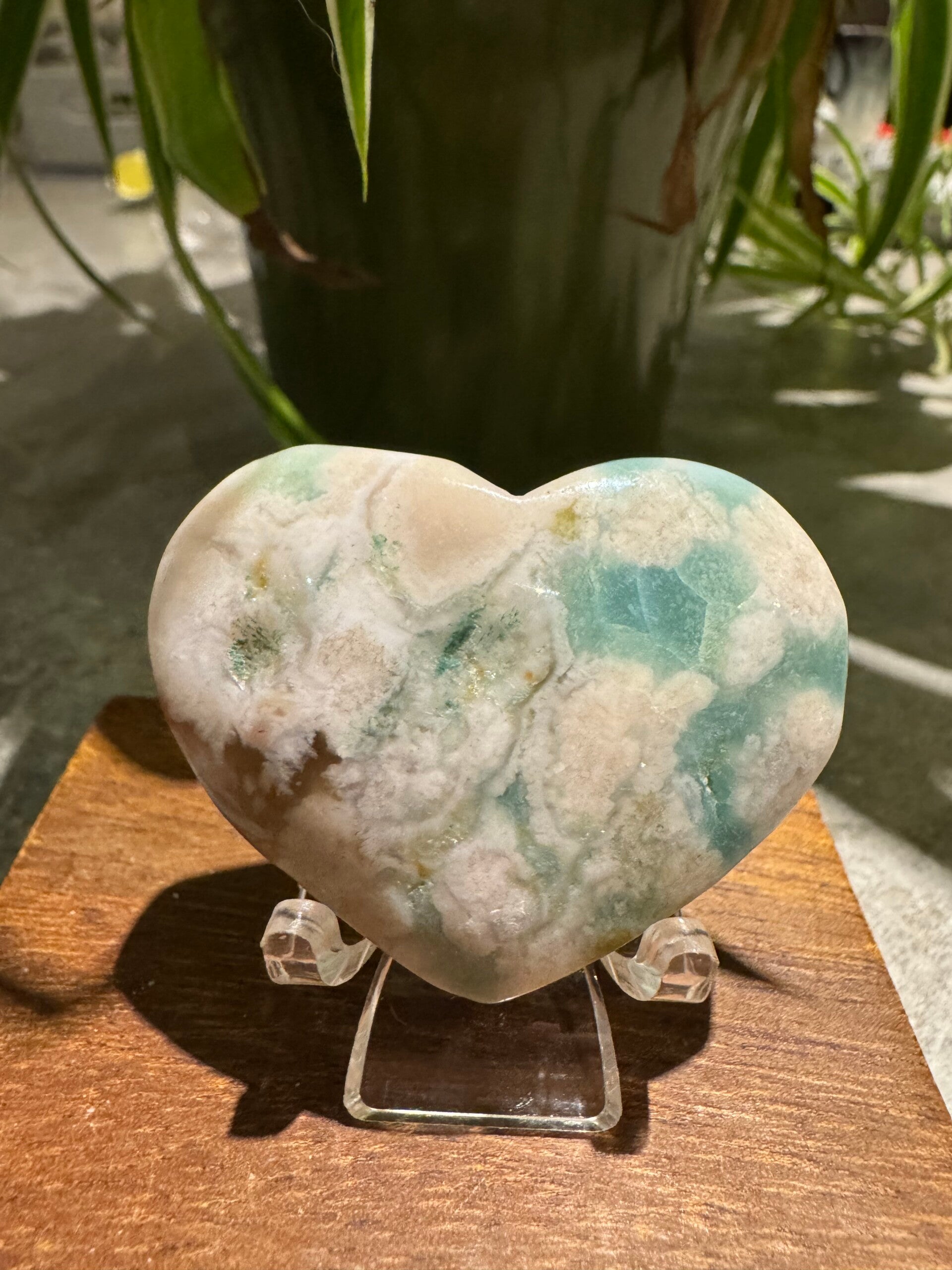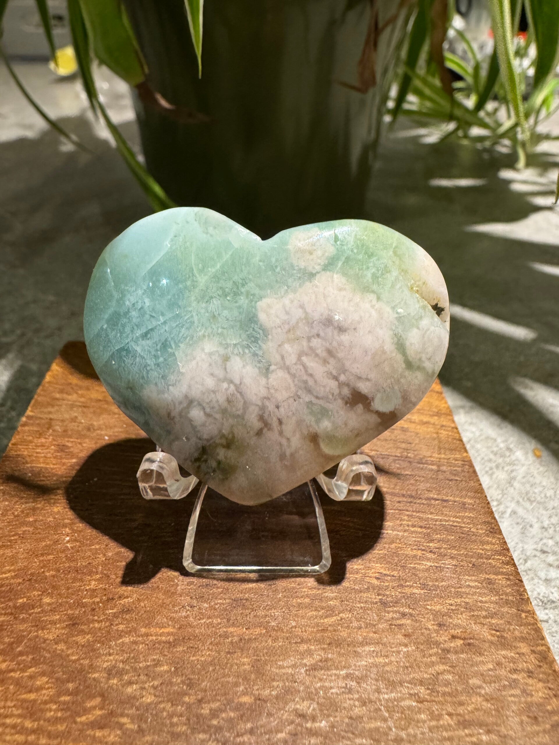 Rare Green Flower Agate Heart w439