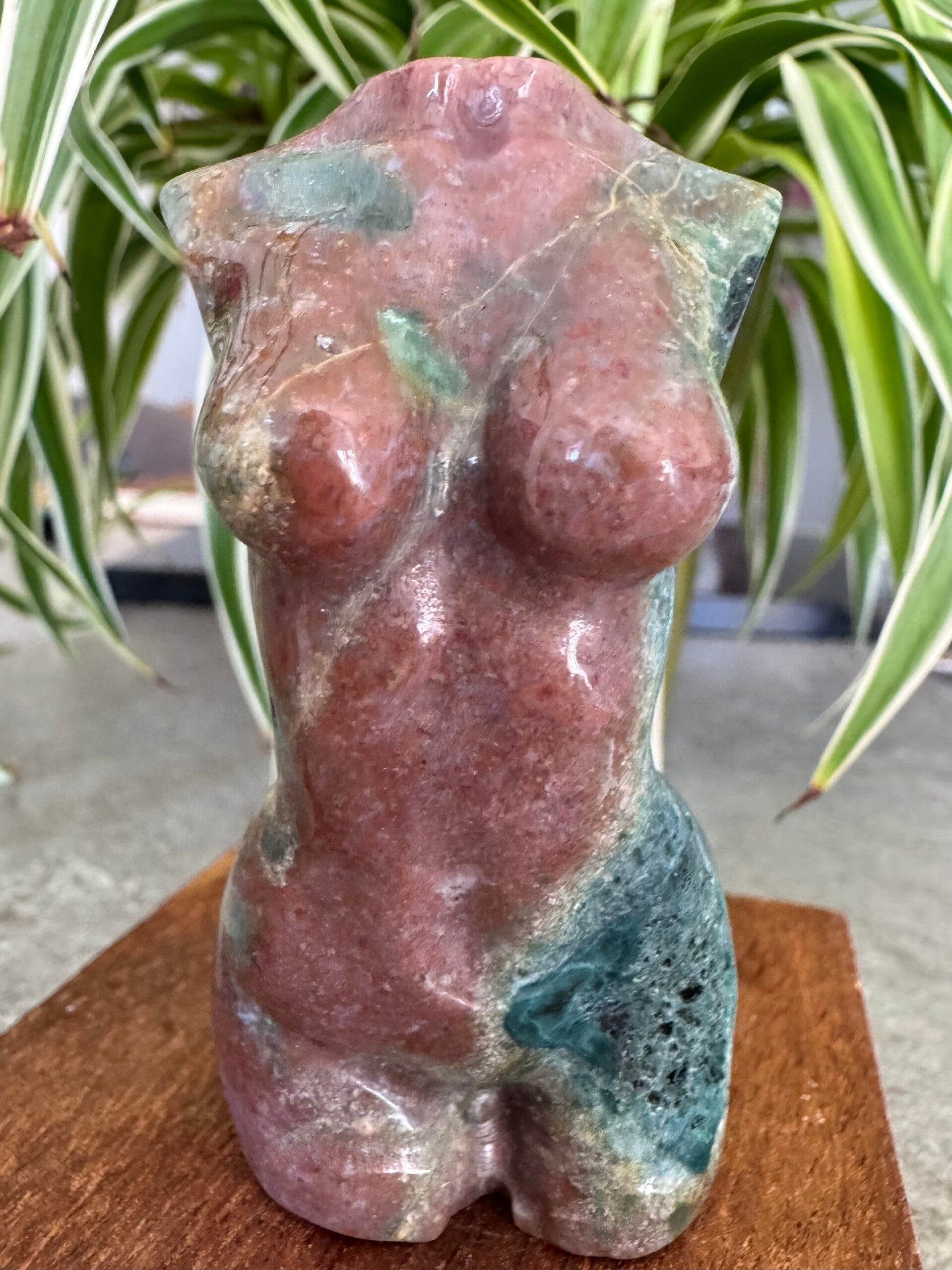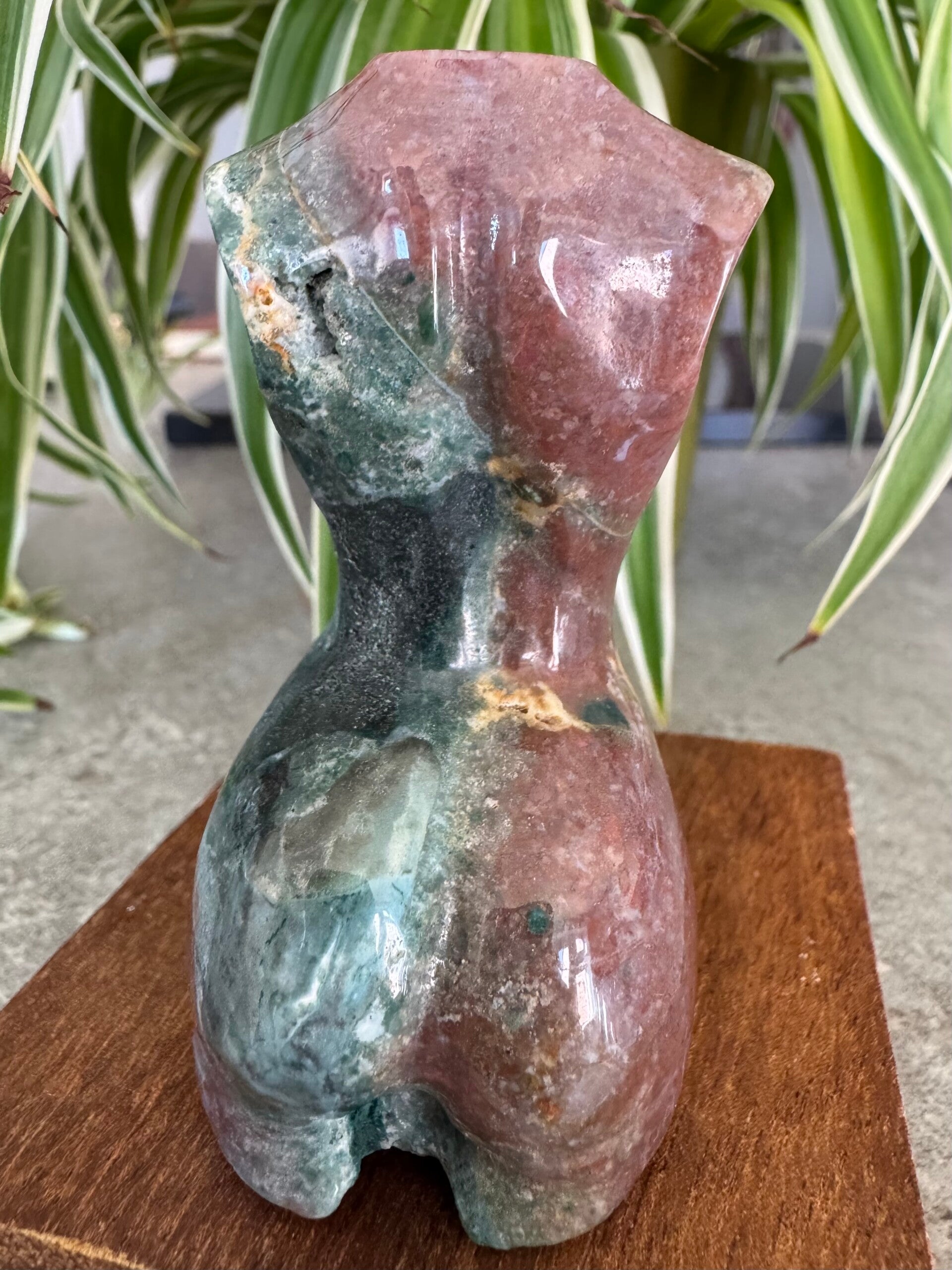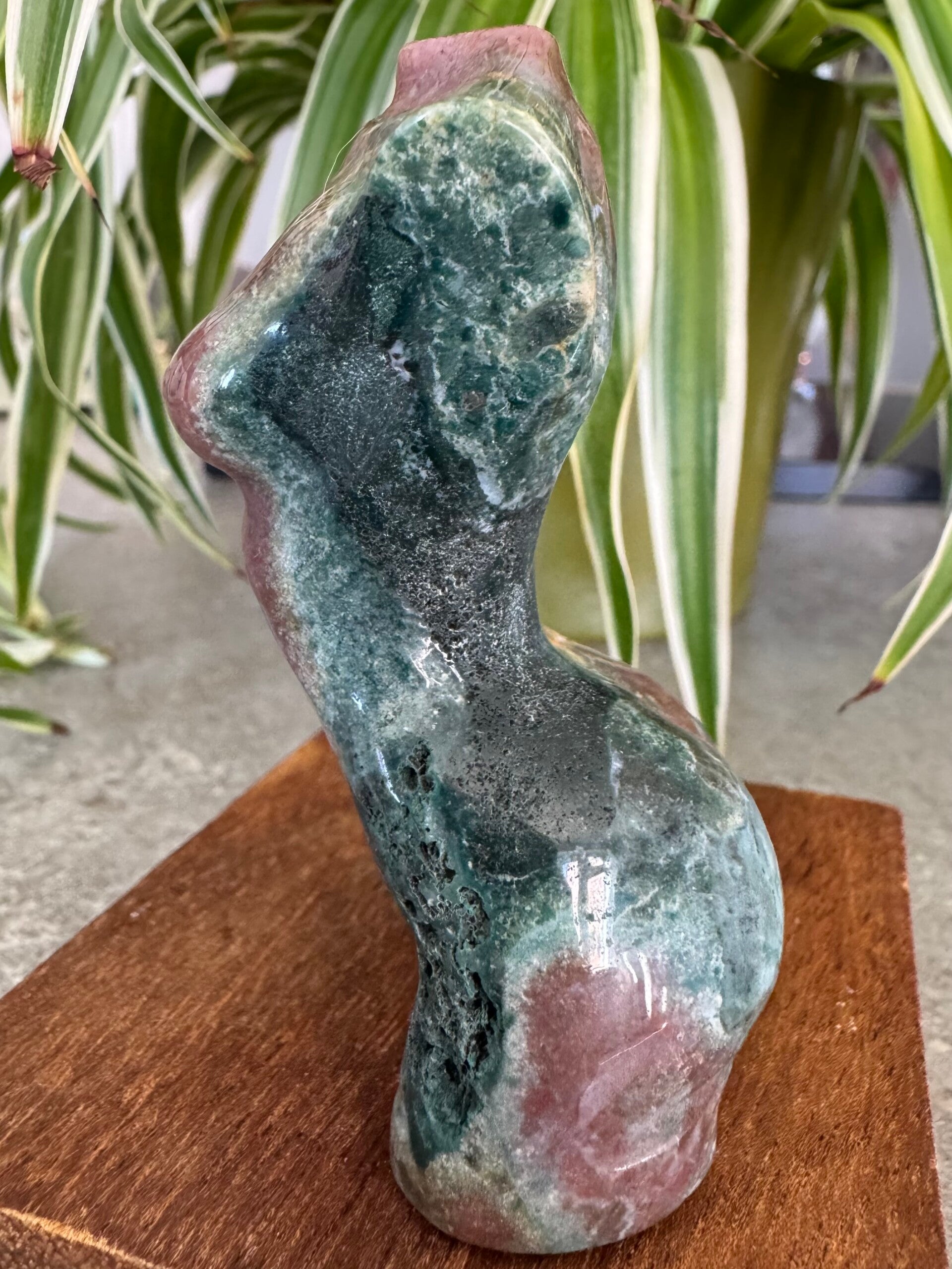 Ocean Jasper is a rare, orbicular quartz found only in Madagascar, characterized by its soothing, watery energy that promotes joy, patience, and emotional healing.