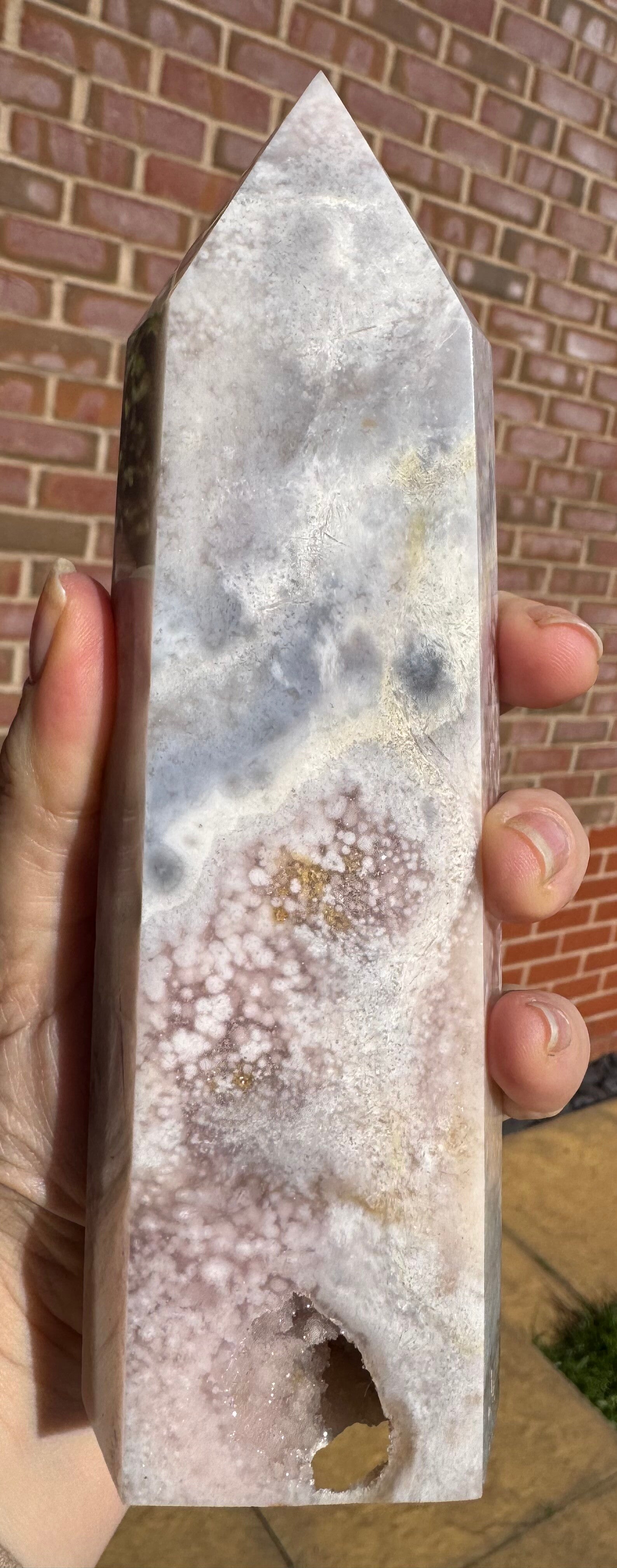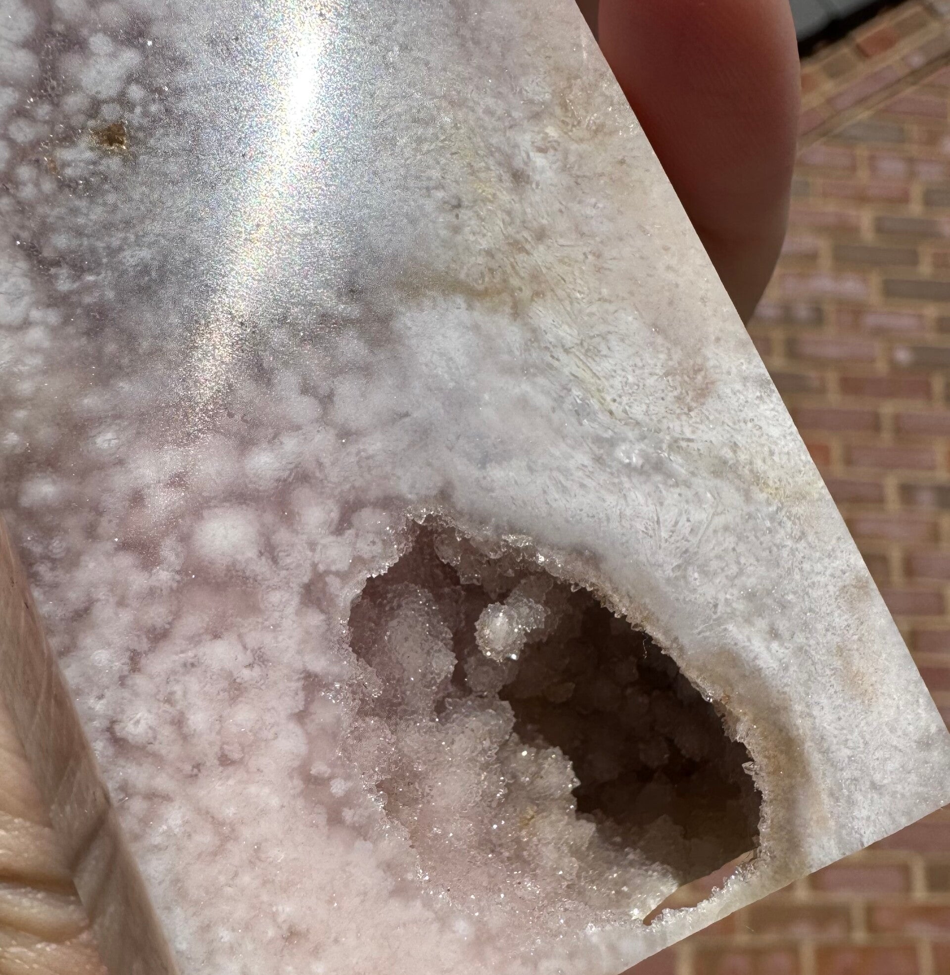Pink Amethyst and Flower Agate combined create a powerful, nurturing stone that fosters emotional healing, self-discovery, and deep inner peace. From Madagascar, this combination blends Flower Agate's calming, grounding, and "blossoming" energy with Pink Amethyst's high-vibe love, clarity, and serenity.