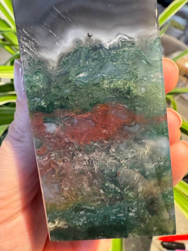 Unique Chunky Moss & Banded Agate with Quartz Tower h22