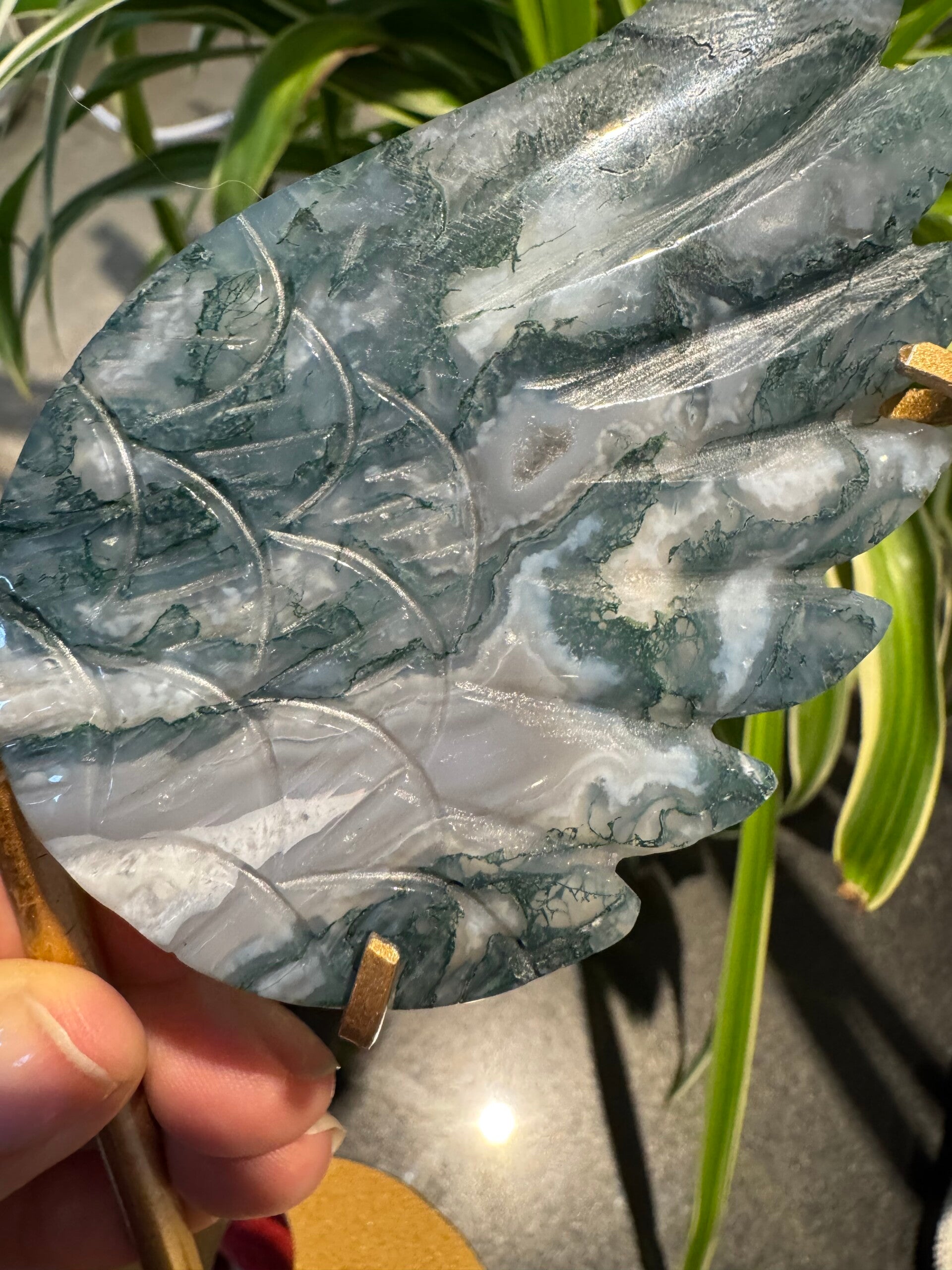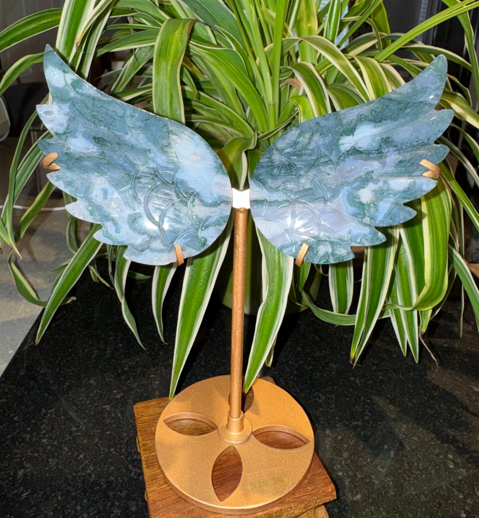 Moss Agate Wings on Stand R29