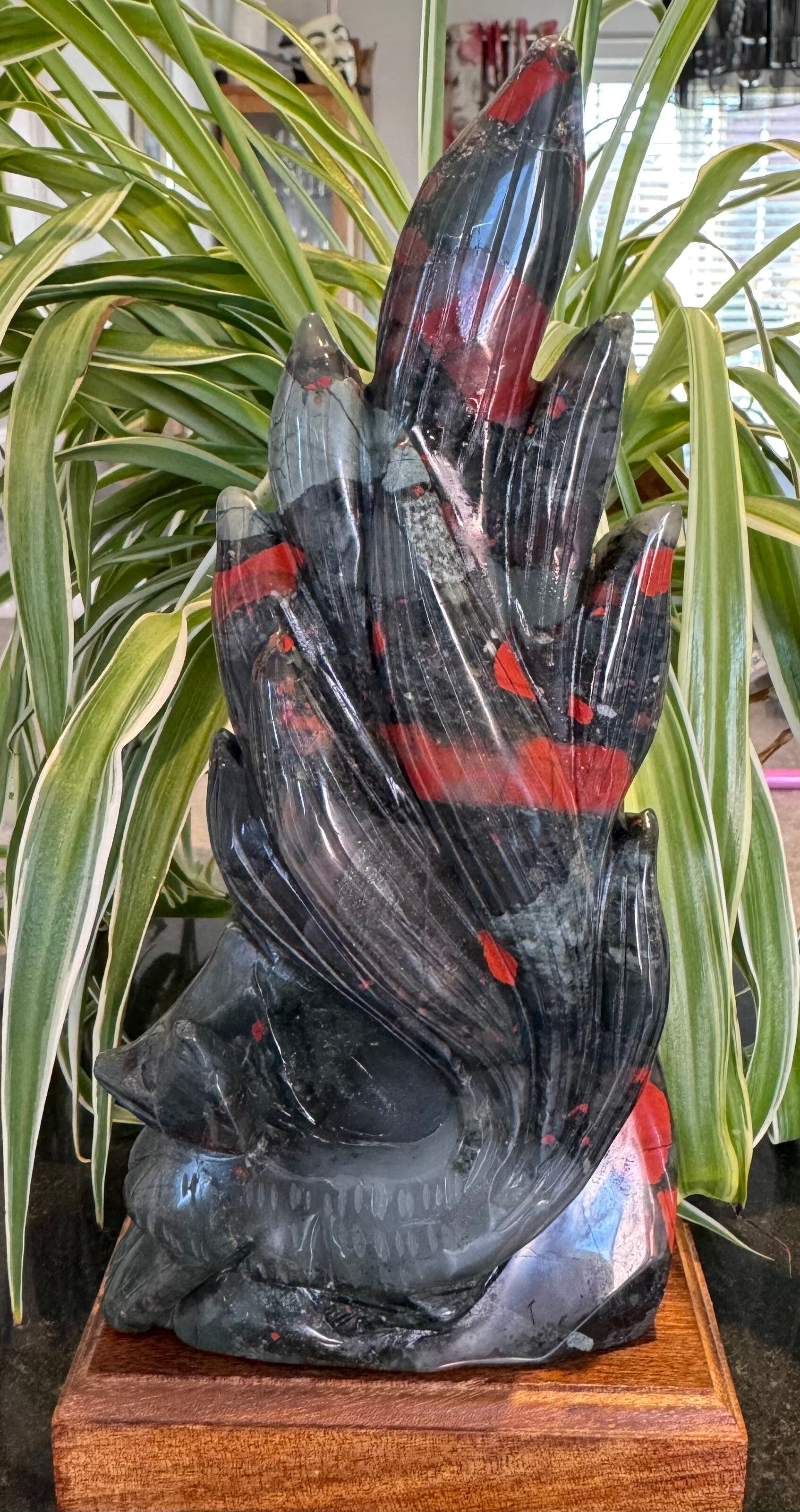 XL African Bloodstone Nine Tail Fox Carving 1.29kg